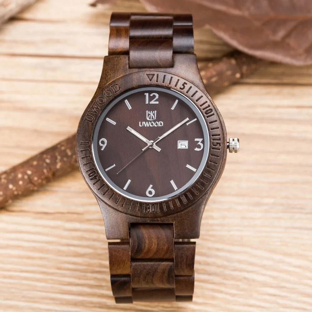 Goede Koop Unieke Vogue hout horloge Mannen Dual Time Heren horloges 2018 top luxe merk UWOOD Horloge Waterbestendig Trendy Lichtgevende Horloge Goedkoop