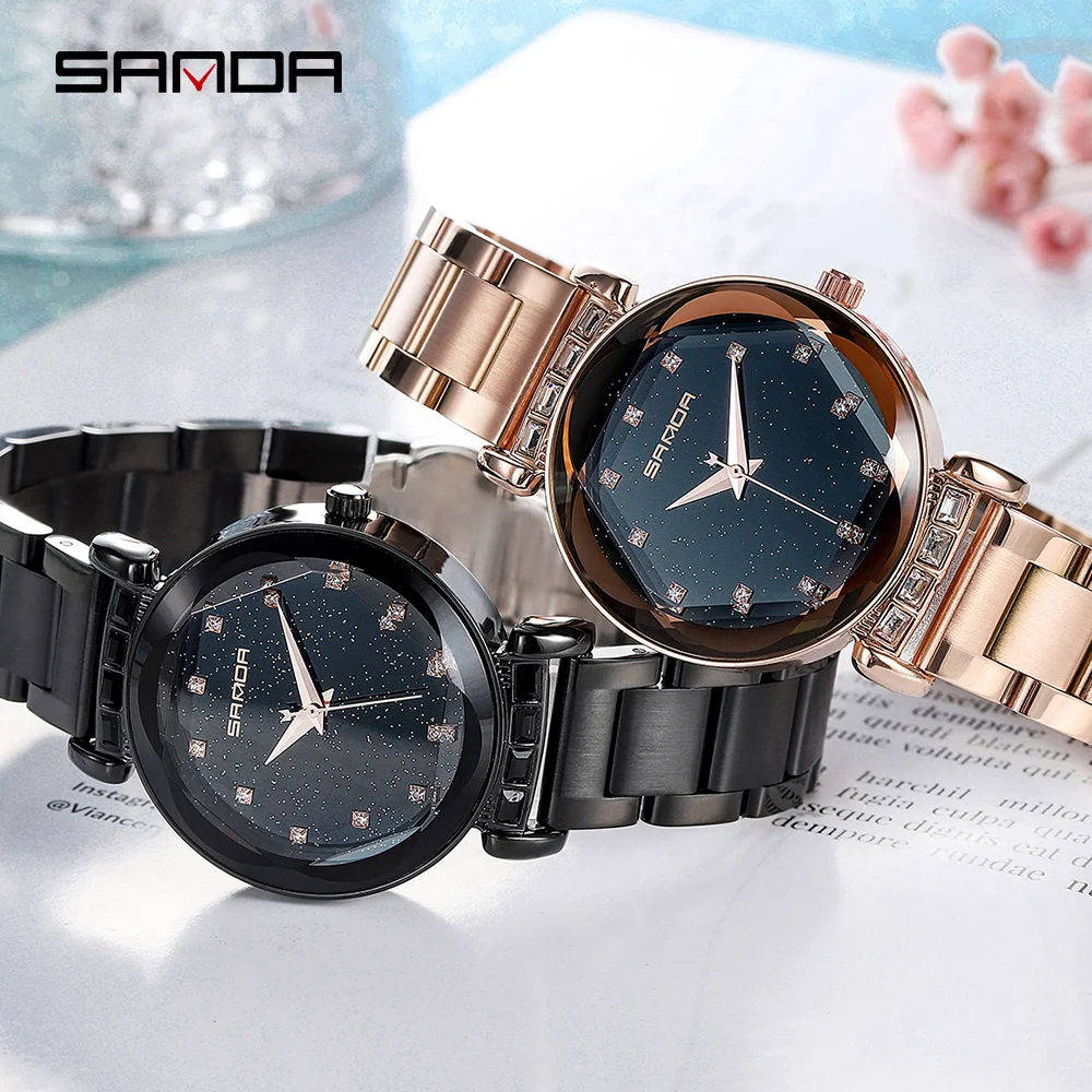 Kopen Goedkoop 2018 Merk SANDA Luxe Vrouwen Horloges Creative Star Dames Wijzerplaat Horloges Roestvrij Stalen Band Quartz Horloge Montre Femme 2018 Online
