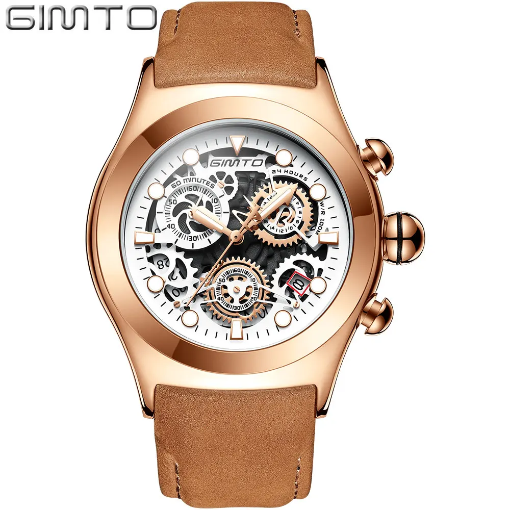 Kopen Goedkoop GIMTO Luxe Quartz Horloge Mannen Nieuwe Goud Zwart Datum Waterdicht Horloge Lederen Band Sport Militaire Mannelijke Horloges Heren Relogio Online