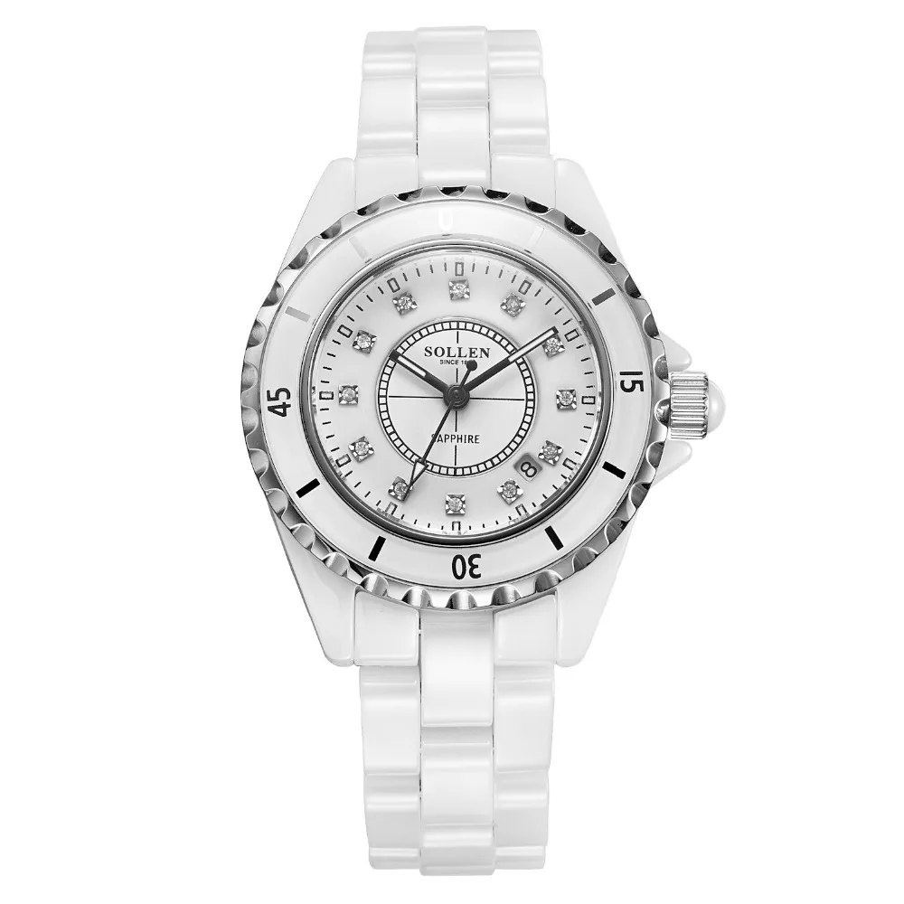 Kopen Goedkoop Montres 2017 SOLLEN Merk Mode Vrouwen Horloge Luxe Toevallige Waterdichte Quartz Keramische Horloges Dames Polshorloge Relogio Feminino Prijs
