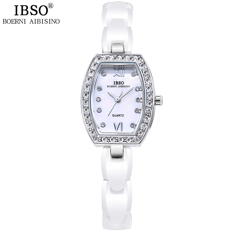 Kopen Goedkoop IBSO Elegante Dame Jurk Horloge 2018 Top Brand Luxe Crystal Shell Dial Keramische Armband Horloges Vrouwen Quartz Horloge #3836 Online