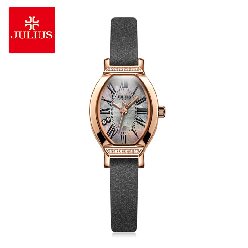 Beste Kopen Julius Retro Dame Vrouwen Horloge Luxe Strass Quartz Dames horloges Mode Lederen Armband Horloge Klok Relogio Feminino Goedkoop