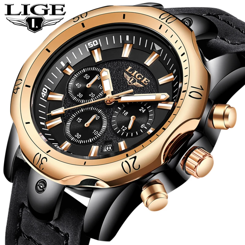 Horloge Mannen Lederen Militaire Waterdicht Goud Sporthorloge Relogio