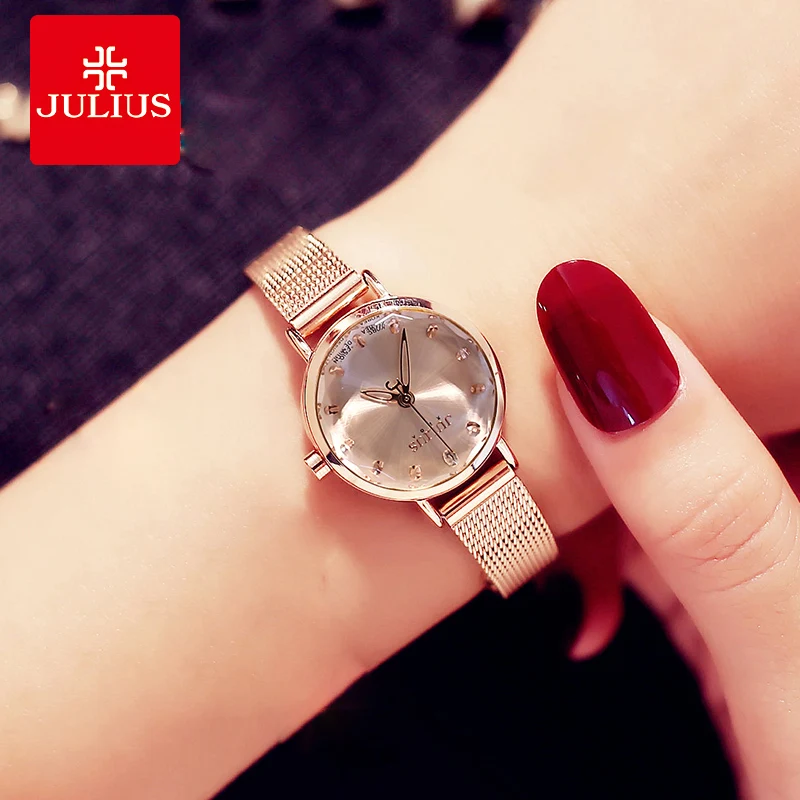 Beste Koop Julius Kleine Wijzerplaat Vrouwen Horloges rvs mesh Dames Horloge Klok Luxe Rose Goud Vrouwelijke Quartz Horloges Montre Femme Goedkoop
