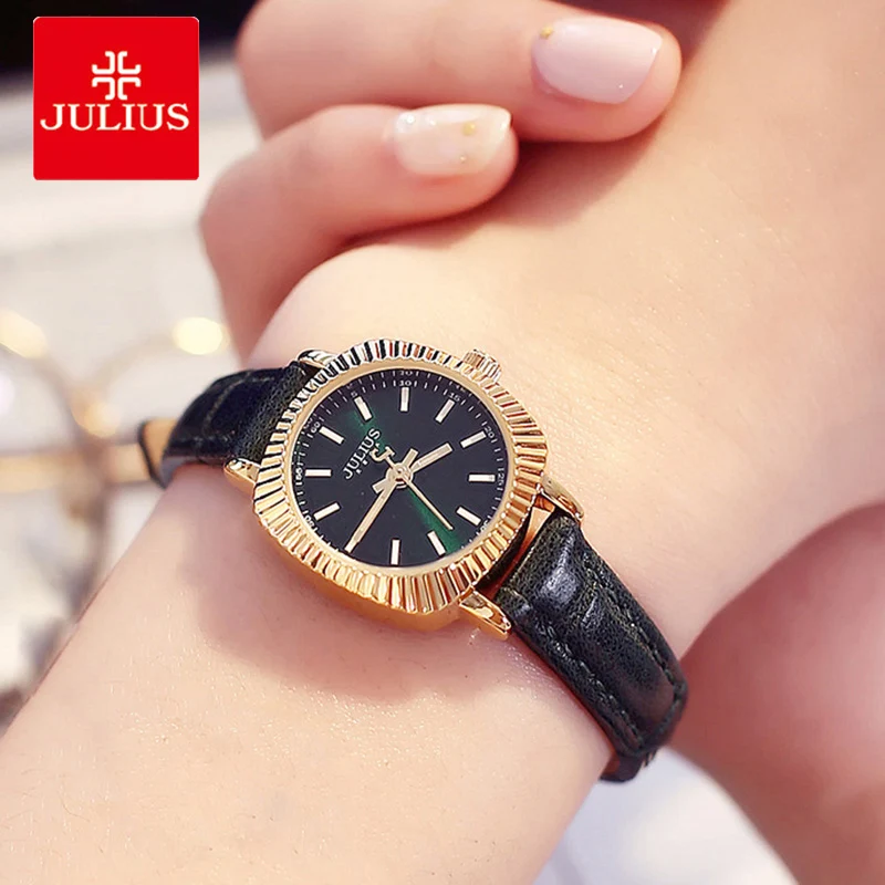Beste Kopen Julius Merk Vrouwen horloges Vintage Vierkante Leer Vrouwelijke Horloge Dames Jurk Quartz horloges Montre Femme reloj mujer Goedkoop