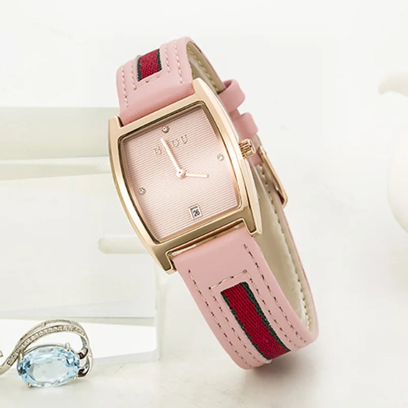 Beste Koop Classic GUOU Brand Lederen Rvs Rechthoek Dial Quartz Dames dames Jurk Polshorloge Horloges 8074 Goedkoop