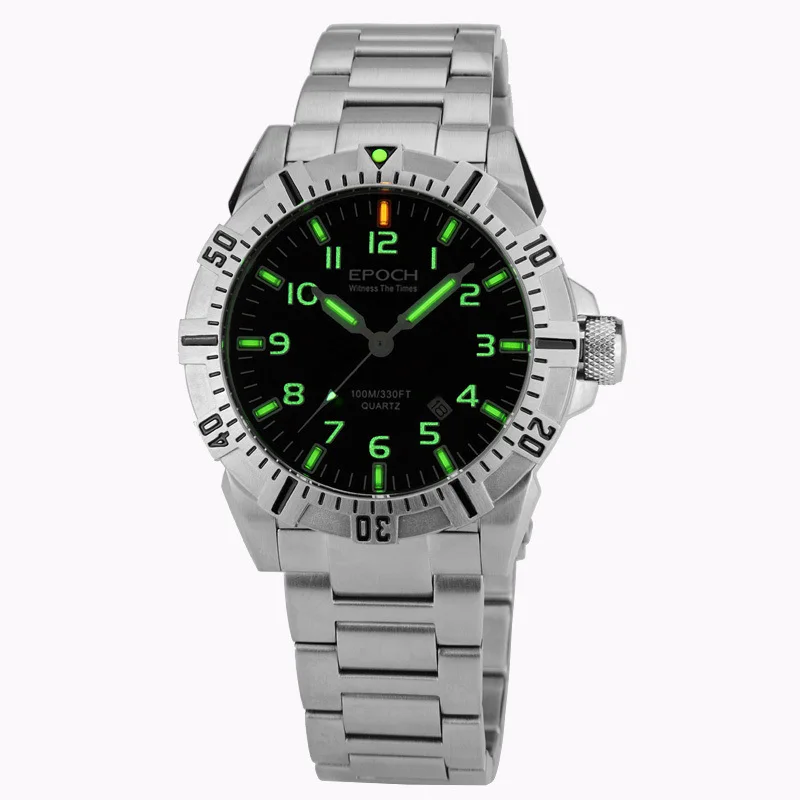 Kopen Goedkoop EPOCH 6020G stalen band waterdicht 100 m tritiumgas tubes lichtgevende sport duiken quartz horloge Online