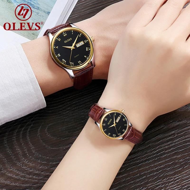 Kopen Goedkoop Paar horloges Voor Lover #039;s Quartz mannen vrouwen horloge luxe top merk OLEVS waterdicht horloge Lederen Mode Lichtgevende klok Nieuwe uhr Prijs