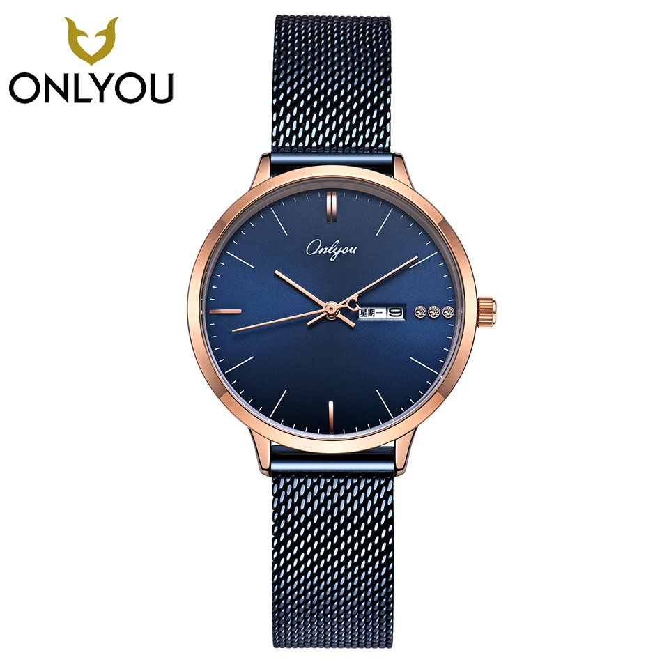 Kopen Goedkoop ONLYOU Mode Vrouwen Horloges Jurk Diamond Mesh Staal Armband Elegante Dames Quartz Horloge Mannen Week Display Klok Paar Online