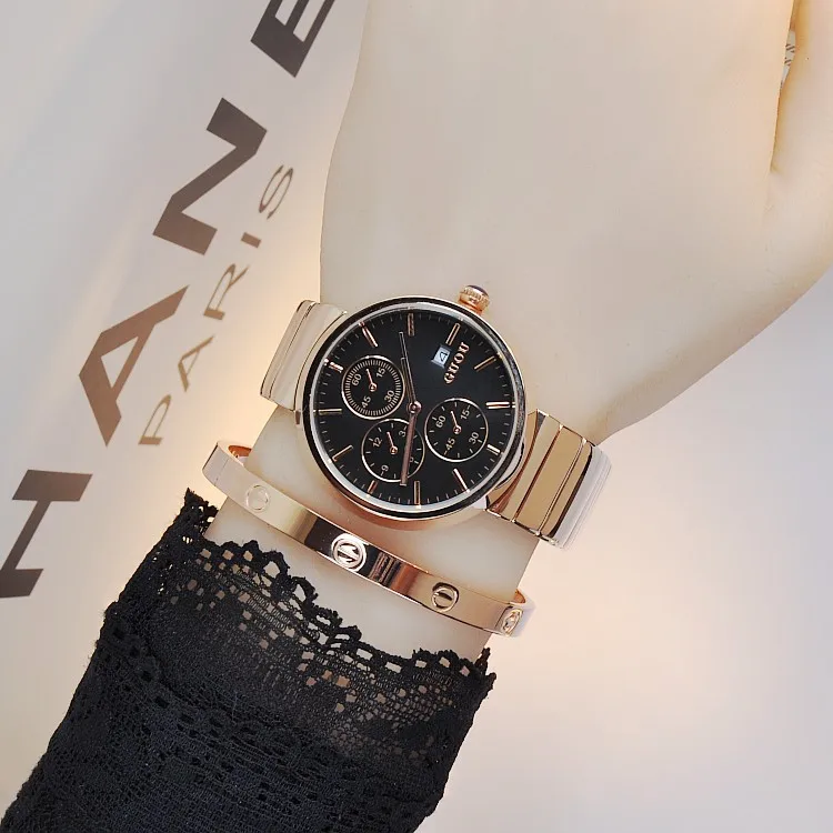 Multifunctionele Dameshorloge Mode GUOU Volledige Stalen Armband Klok