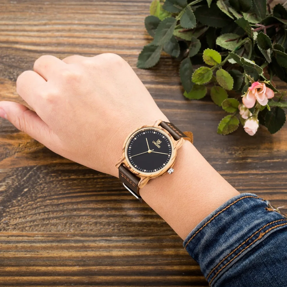 Kopen Goedkoop Fashion Houten Horloges Voor Vrouwen Casual Hout Quartz Horloge Bruin Rundleer Strap Met Doos Valentijnsdag Unieke Geschenken Prijs