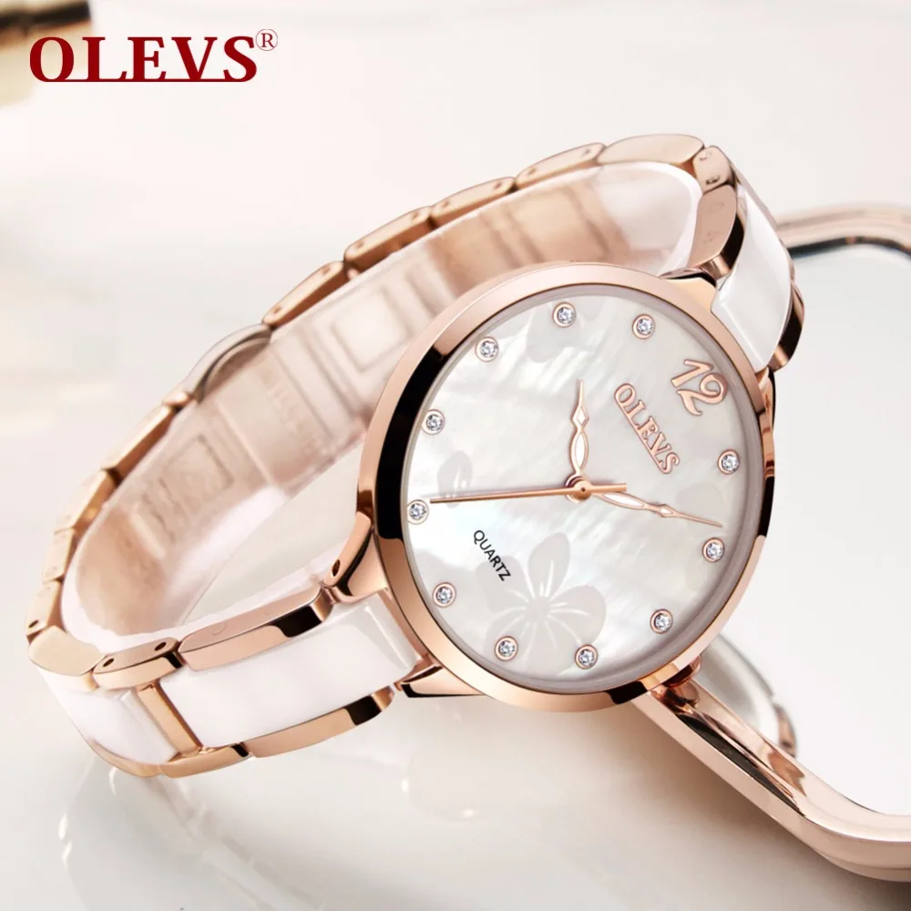Goede Koop OLEVS Horloge Vrouwen Rose Goud Keramiek Luxe band Japan Quartz Elegante Mode Jurk Dames Polshorloge relogio feminino Goedkoop