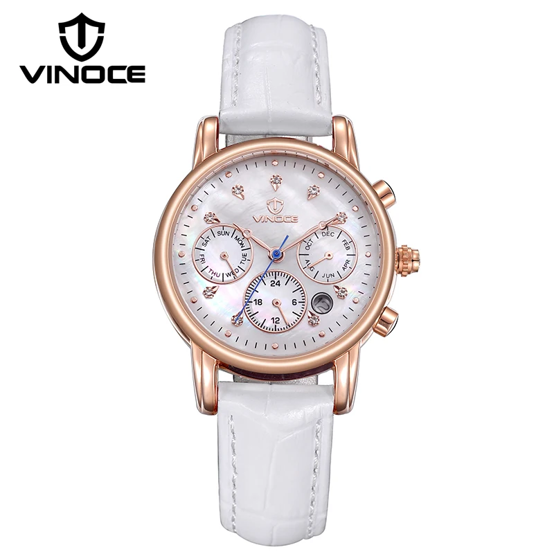 Beste Koop VINOCE Luxe Crystal Diamond Dames Quartz Horloges Top Brand Echt Lederen Band Vrouwen Horloges 50 M Waterdicht Relogio Feminino Goedkoop