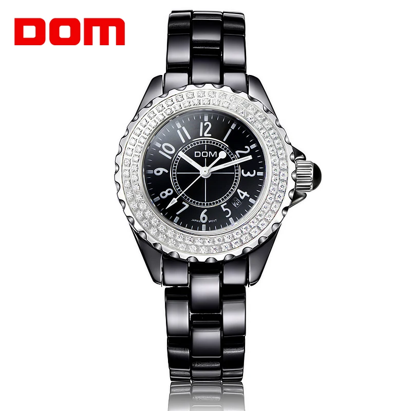 Goede Kopen DOM Mode Casual Dameshorloge Vrouwen Strass Keramische Quartz Vrouwen Horloges voor Meisje Waterdichte Klok Reloj Mujer Bayan Saat Goedkoop