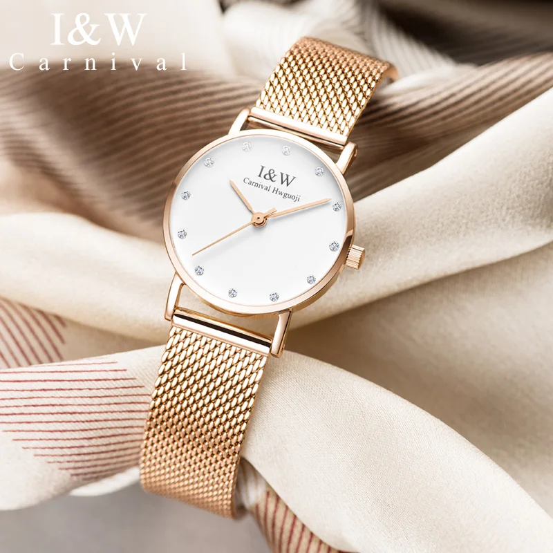 Kopen Goedkoop CARNAVAL Synthetische Sapphire Milanese loop Quartz Vrouwen Horloge Topmerk Luxe Minimalistische Mode ultradunne Reloj Wijzerplaat femenino Online
