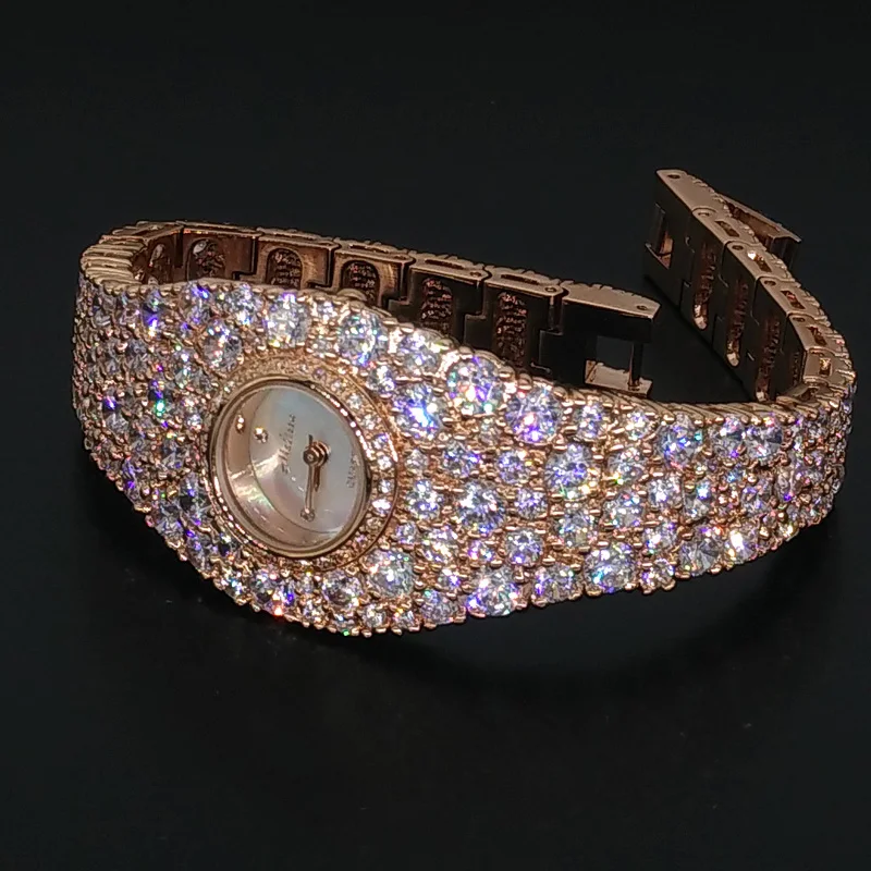 Beste Koop Extravagant Volledige Kristallen Sieraden Horloge voor Vrouwen Elegant Party Dress Horloge Bangle Armband Horloge Quartz Montre Femme F8016 Goedkoop