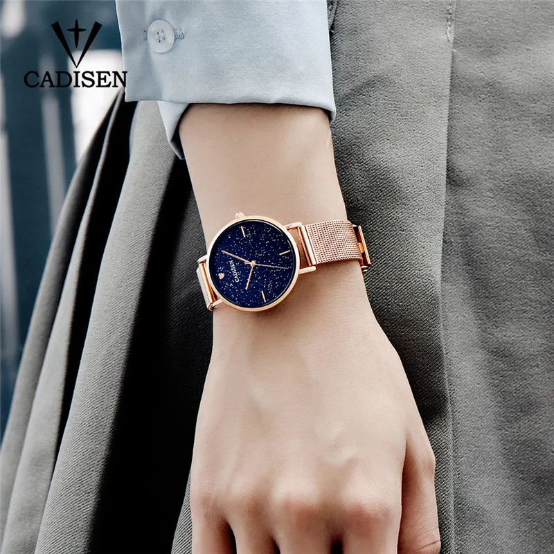 Beste Kopen CADISEN Fashion Gold Vrouwen Horloges 2018 Hoge Kwaliteit