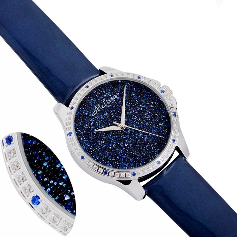 Kopen Goedkoop Melissa Merk Vrouwen Klassieke Ontwerp Sky Sterren Horloges Eenvoudige Mode Vrouwen Sparkly Jurk Horloge Quartz Lederen Montre Femme Reloj Online