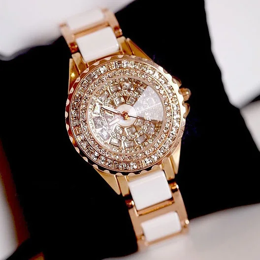 Goede Koop Top Brand Vrouwen Horloges Mode Luxe Dames Rhinestone Diamond Horloge Keramische Band Quartz Vrouwelijke Polshorloge Relogio Feminino Goedkoop