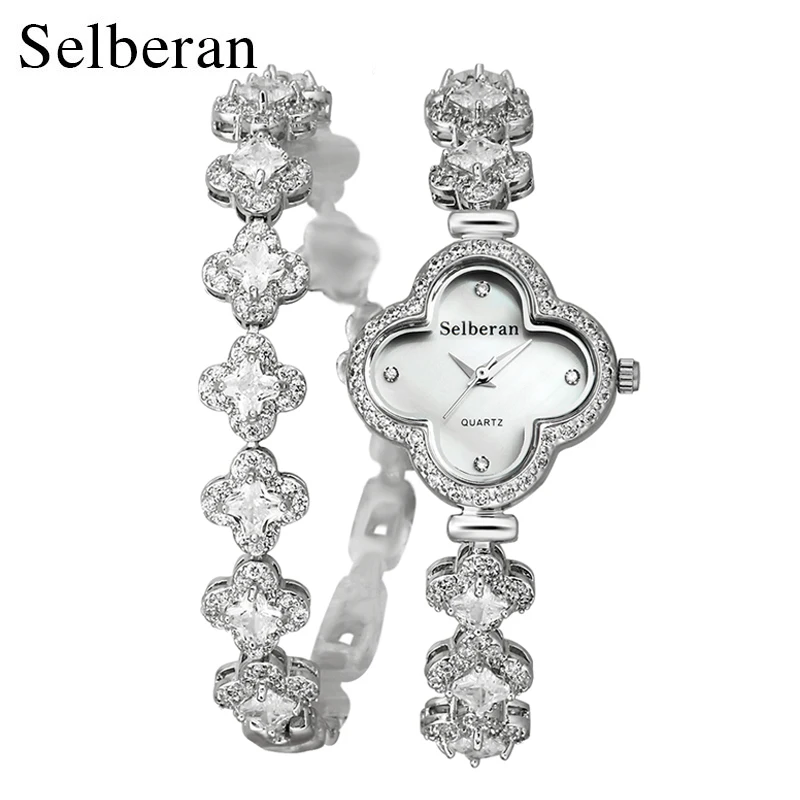 Kopen Goedkoop 2018 Zomer Collectie Sapphire Crystal Clover Vorm 50 m Waterbestendig 2 Ronde Armband Horloge Vrouwen Casual Quartz Horloge Online