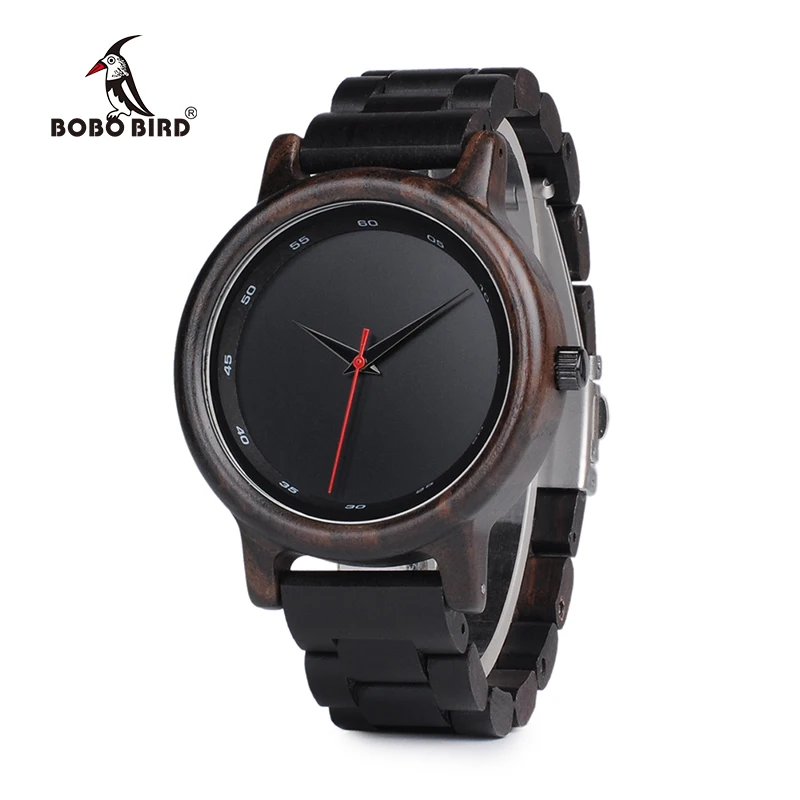 Beste Koop BOBO VOGEL V P10 Horloges Mannen Natuurlijke Zwarte Houten Ebbenhout Quartz Mode Horloge met Rood Tweedehands Goedkoop
