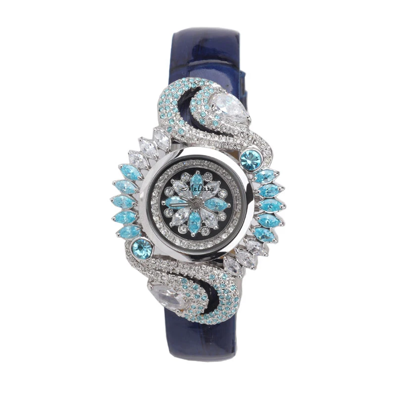 Goede Kopen Melissa Fashion Overdreven Designer Vrouwen Sieraden Horloges Luxe Volledige Rhinestones Bloem Horloge Quartz Real Leather Montre Femme Goedkoop