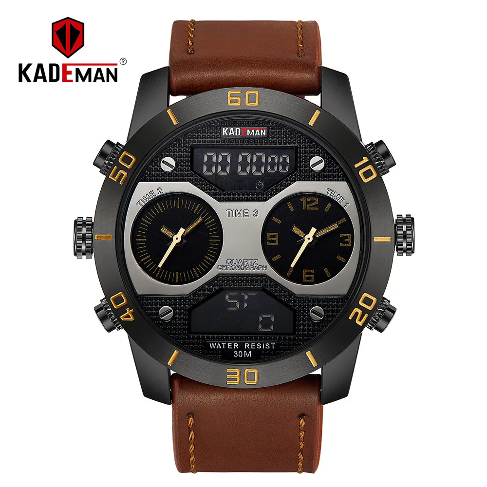 Kopen Goedkoop KADEMAN Digitale Analoge Mannen Horloge TOP Merk Waterdichte Chronograaf Lederen Sport Militaire Horloges Fashion Klok Relogio Masculino Prijs