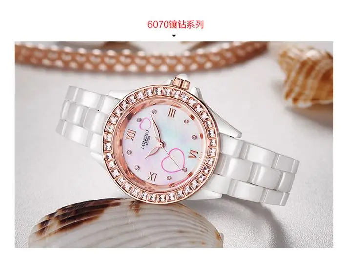 Goede Kopen LONGBO Horloges voor vrouwen witte keramische vrouwelijke quartz horloge sport strass waterdicht dame top kwaliteit horloges 6070A Goedkoop