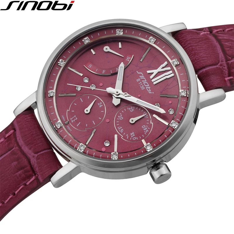 Kopen Goedkoop SINOBI Vintage Rode Vrouwen Lederen Horloges Multifunctionele Quartz Klok Dames Polshorloge 50 m Waterdicht Relojes Mujer 2018 Geschenken Online