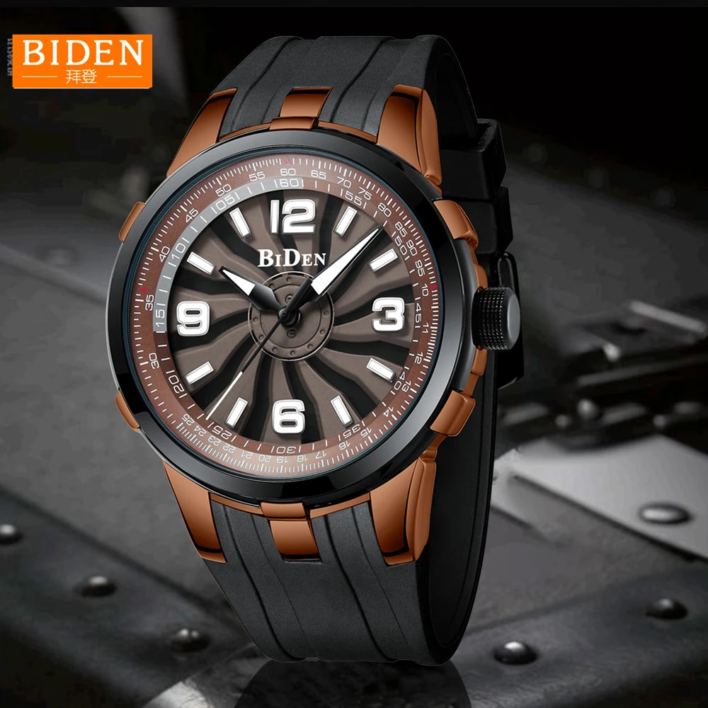 Kopen Goedkoop BIDEN 2018 Nieuwe Horloge Mannen Draaien Dial Luxe Top Merk Siliconen Band Stereo dial Mens Sport Horloge Waterdicht Mannelijke Colock Online