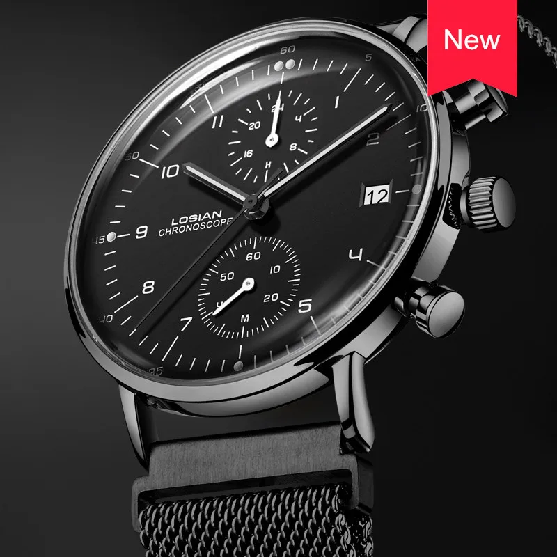Kopen Goedkoop LOSIAN Mannen Horloge Top Merk Luxe Datum Uur Minuten Wijzerplaat Waterdicht Zwart Horloge voor Vriend Rvs Relogio Feminino Online