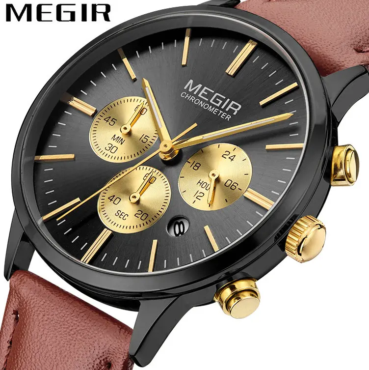 Kopen Goedkoop MEGIR Koninklijke Vrouwen Horloges Quartz Lederen Band Golden Sub dial Kalender Top Merk Luxe Dames Pols Horloges Paar Klok Prijs