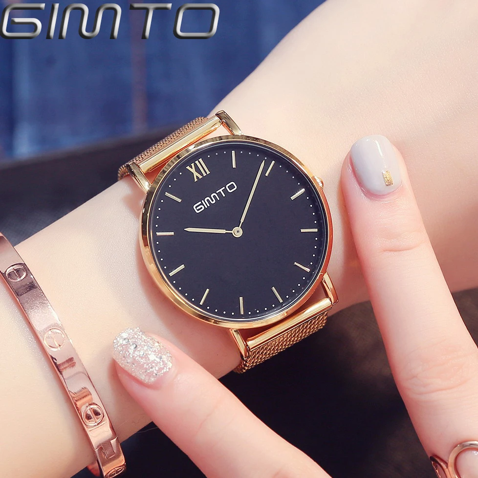 Beste Koop GIMTO Merk Quartz Vrouwen Horloges Luxe Klok Stalen Gouden Armband Dames Horloge Liefhebbers Vrouwelijke Sport Polshorloge Relogio Feminino Goedkoop