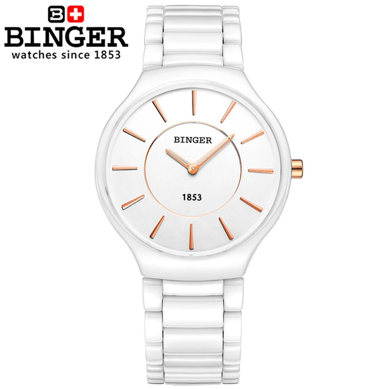Beste Kopen Zwitserland BINGER Luxe Merk Horloges Witte Keramische Quartz vrouwen Horloge Liefhebbers Stijl Sapphire Waterdichte Horloges Vrouwen Goedkoop