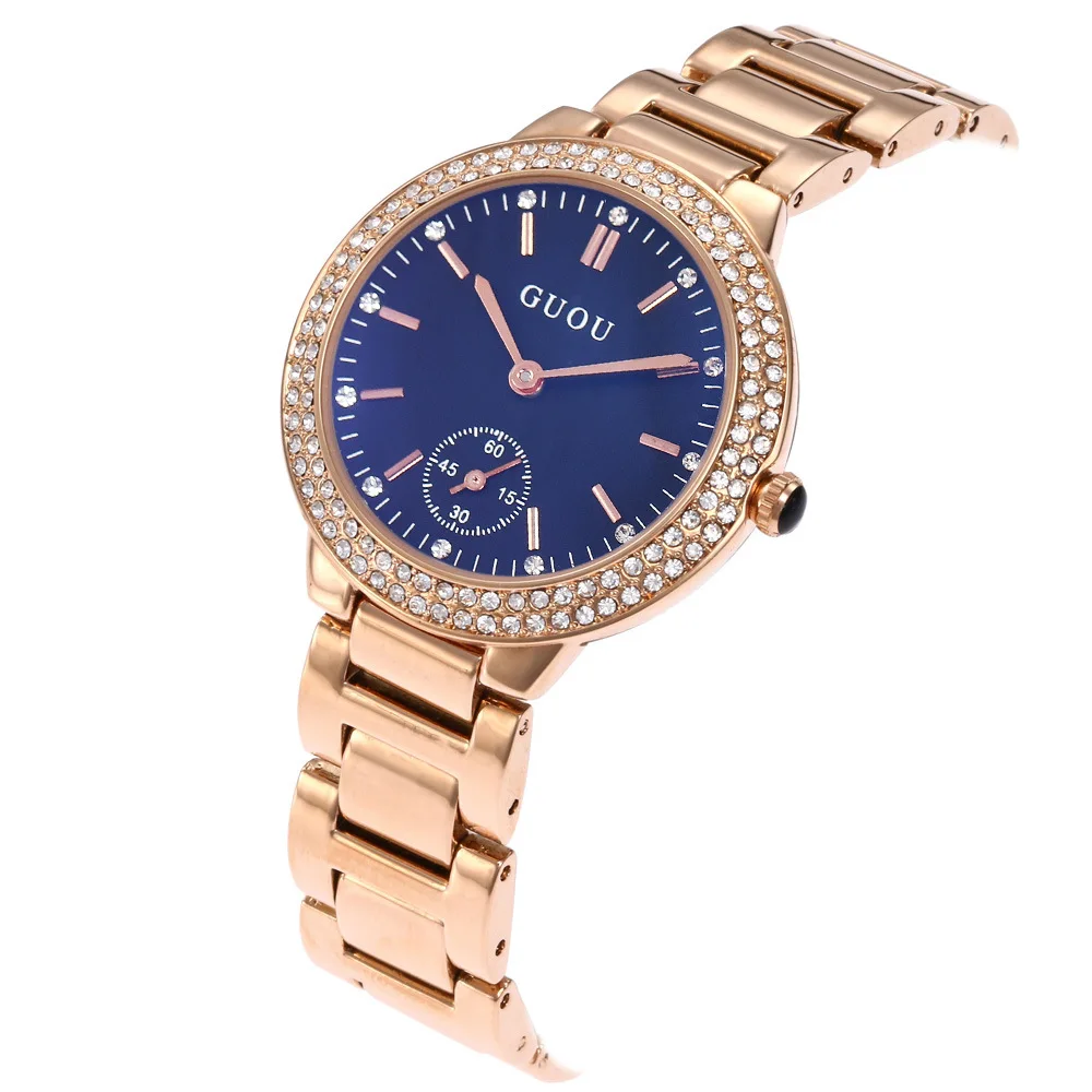 Goede Koop 2018 Fashion Guou Horloge Vrouwen Luxe Blu ray Dames Stijlvolle Water Diamant Horloge Cadeau Voor Meisje Saat Relogio Feminino Goedkoop