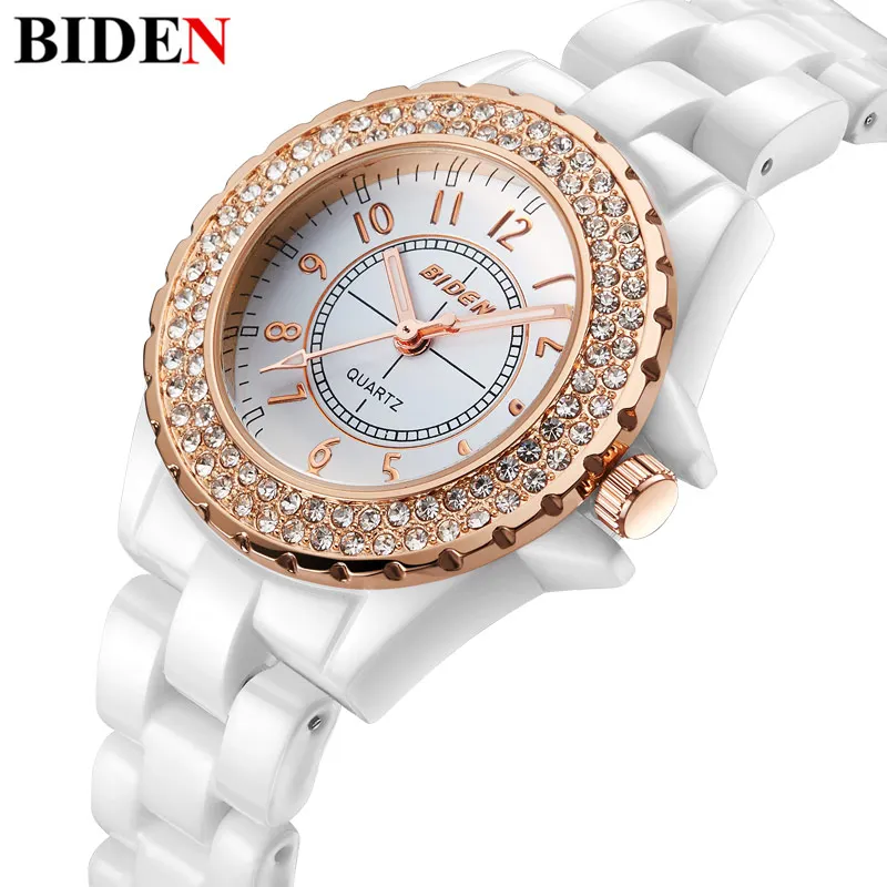 Kopen Goedkoop 2017 BIDEN Horloges Vrouwen Luxe Merk Casual Dames Crystal Quartz Horloge Voor Vrouwen Waterdichte True Keramische Horloges Relogio Online