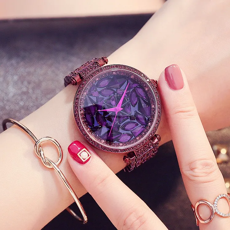 Goede Kopen 2018 Nieuwe Paars Vrouwen Armbanden Horloges Top Luxe Rhinestone Horloge Fashion Lady Crystal Jurk Horloges Vrouwelijke Quartz Horloge Goedkoop
