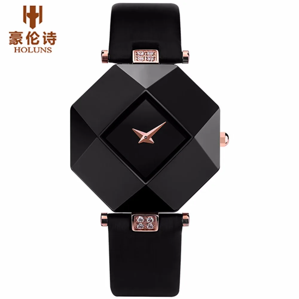 Kopen Goedkoop HOLUNS Merk Luxe Lederen Horloges Vrouwen Creatieve Keramische Diamond Dial Fashion Casual Echt Elegante Dames Quartz Horloge Online
