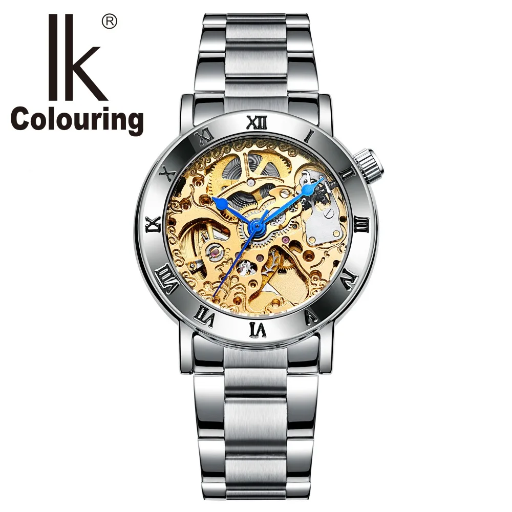Kopen Goedkoop IK 2017 Nieuwe Mode Automatische Mechanische Vrouwen Horloge Hollow Skeleton Volledige Staal OL Dame Horloge Vrouwen Montre femme Orologio Donna Prijs