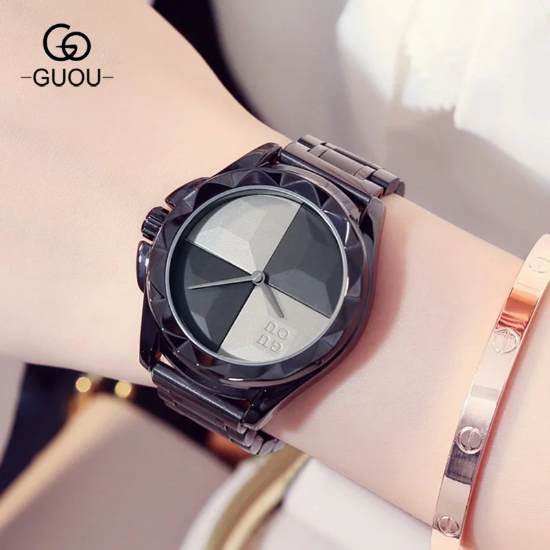 Kopen Goedkoop Luxe Mode GUOU Horloge Vrouwen Quartz Horloge Relogio Feminino Vrouwen Polshorloge Jurk Mode Horloge Reloj Mujer Zwart 8815 Online