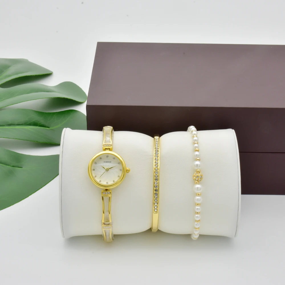 Beste Kopen Nieuwe Mode Vrouwen Horloge Set Dames Edeler Fashion Casual Gold Eenvoudige Ronde Wijzerplaat Armband Horloge Quartz Horloge Vrouwelijke Met Doos Goedkoop