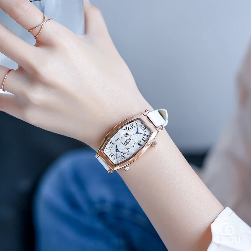 Beste Koop GUOU Horloge Vrouwen Unieke Dubbele beweging dubbele wijzerplaat Mode Lederen Vrouwen Horloges klok relogio feminino bayan kol saati Goedkoop