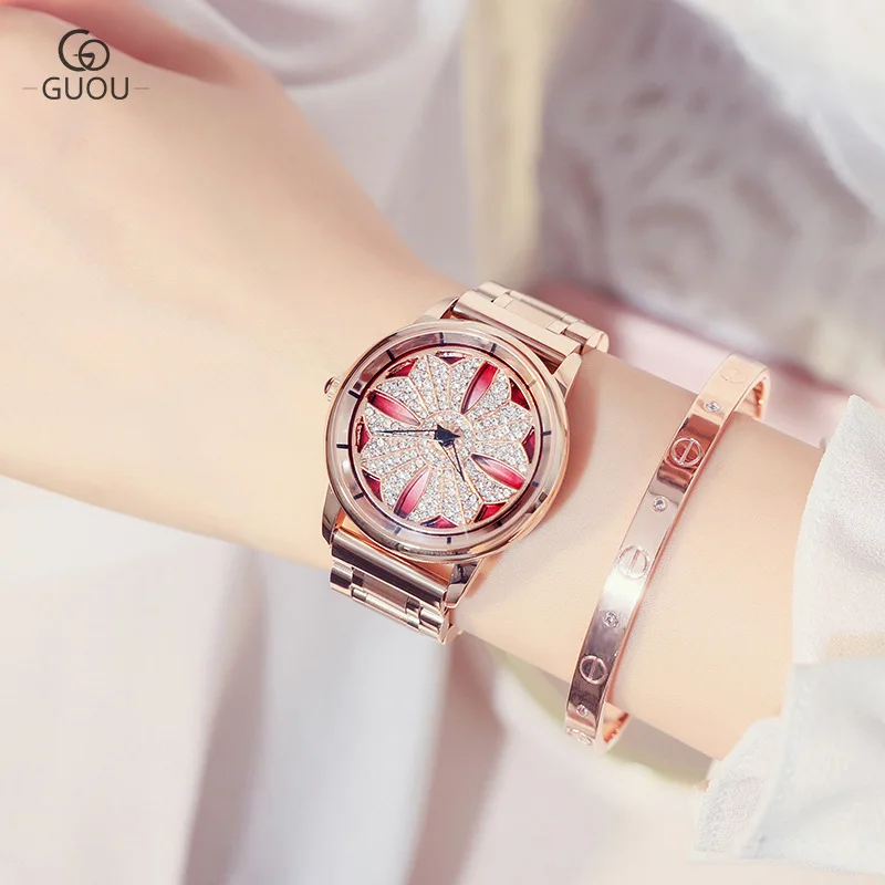 Rotatie Jurk Diamant Steen Polshorloge Rose Gold Goedkoop