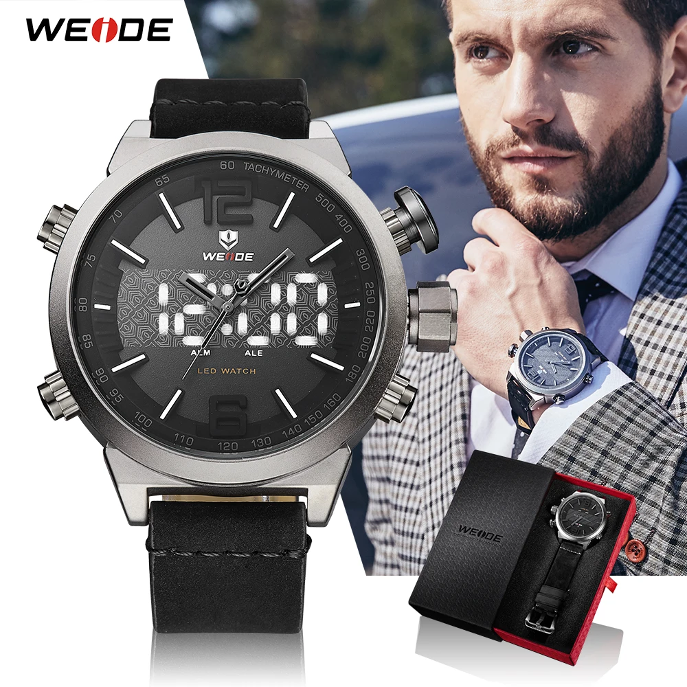 Beste Koop WEIDE Sport Mannen Horloges Luxe Merk Analoge Quartz Lederen Armband Klok Mannelijke Militaire Fashion Horloges Drop Ship Goedkoop