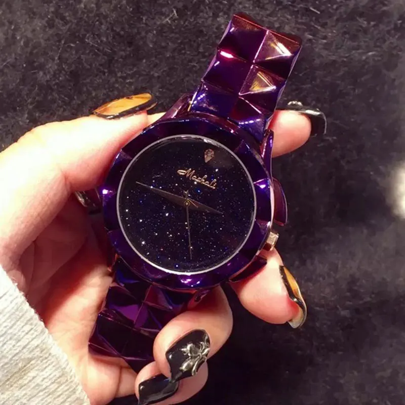 Horloge Big Diamond Stone Paars Montre Femme Goedkoop