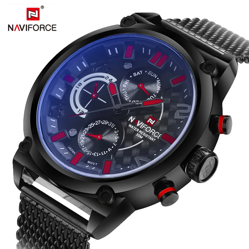 Kopen Goedkoop 2016 mannen NAVIFORCE Luxe Merk Analoge Quartz Horloge Man 3ATM Waterdicht Fashion Casual Sport Horloges Mannen vol staal Polshorloge Prijs