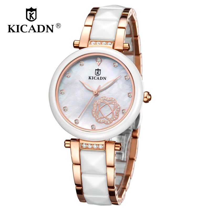 Goede Koop Dames Mode Horloge Vrouwen Luxe Diamond Quartz Horloges KICADN Gouden Jurk Horloges Casual Keramische Klok Relogio Feminino Goedkoop