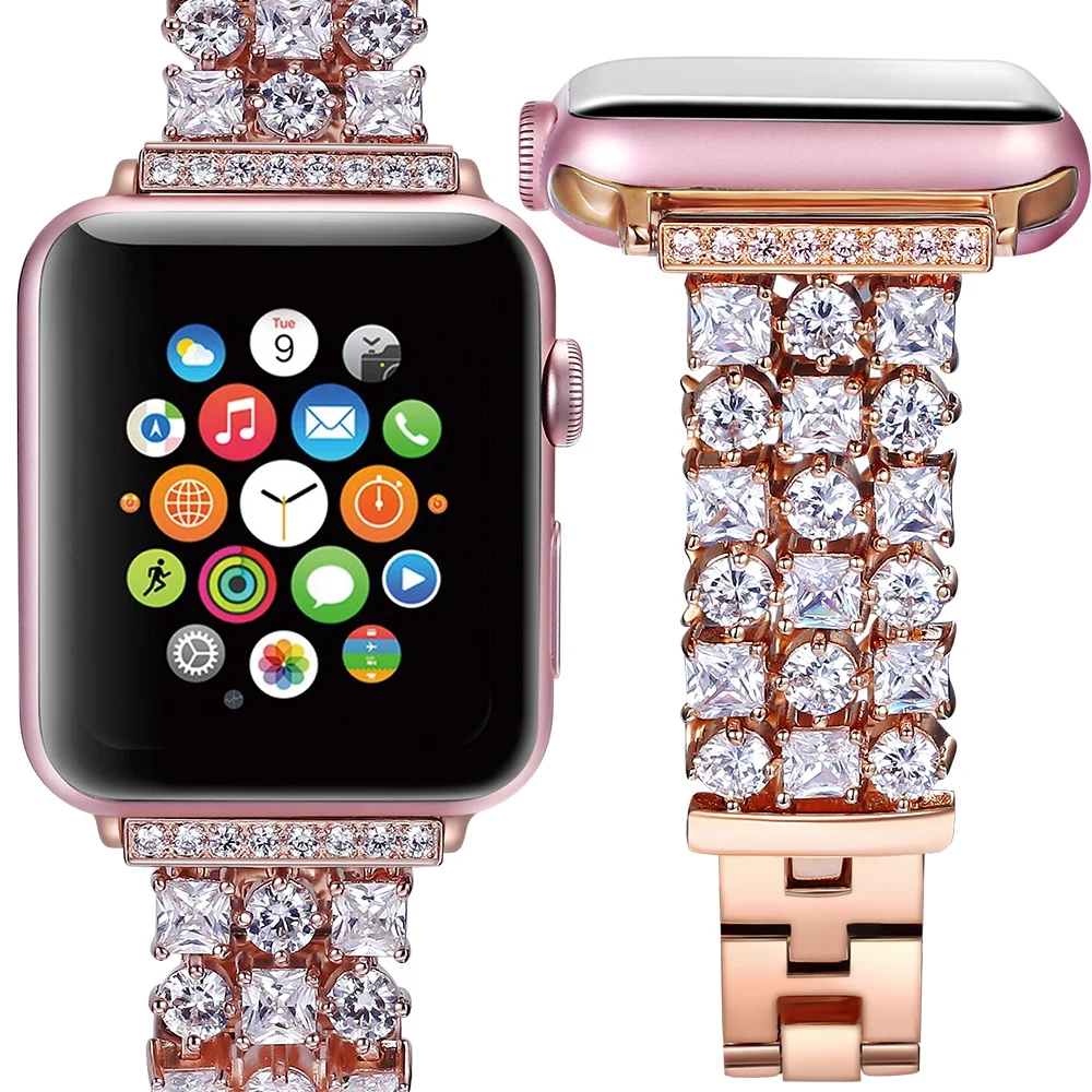Goede Koop 2018 vrouwen mannen Luxe Diamanten band voor iwatch band voor apple watch 42mm 38mm riem serie 3 2 1 Goedkoop