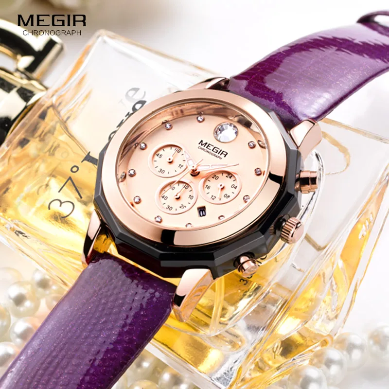 Goede Koop MEGIR Vriendin Serie Quartz Horloges voor Vrouwen Mode 24 Uur Waterdicht Chronograph Horloge voor Vrouw Lady 2042 LREPU Goedkoop