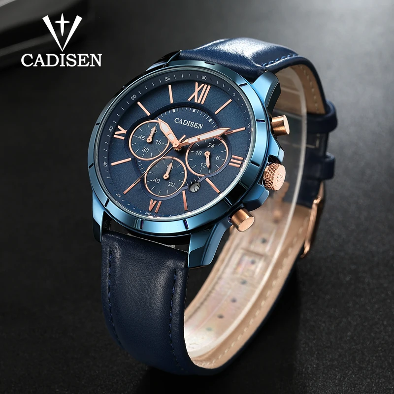 Goede Kopen CADISEN Heren Horloges Top Luxe Merk Sport Horloge Mannen Militaire Lederen Quartz horloge Waterdicht Mannelijke Klok Relogio Masculino Goedkoop